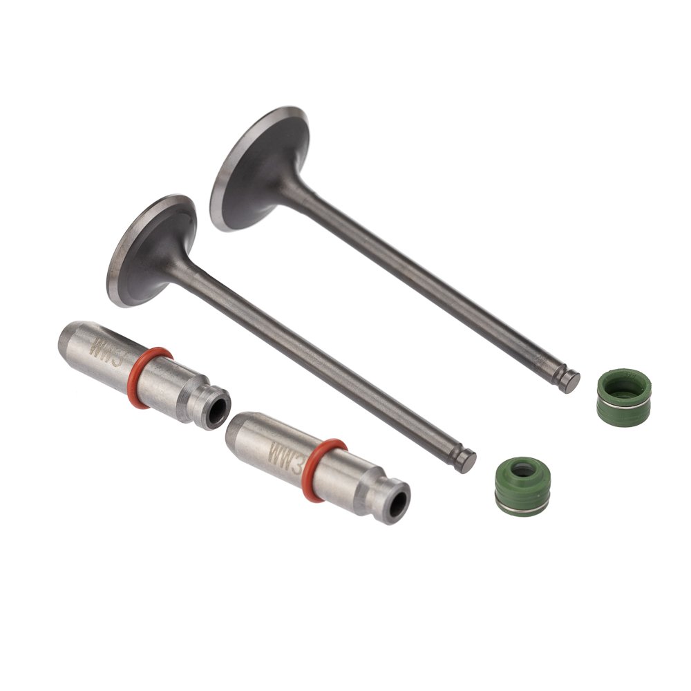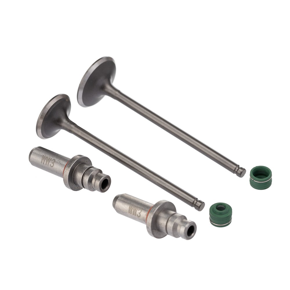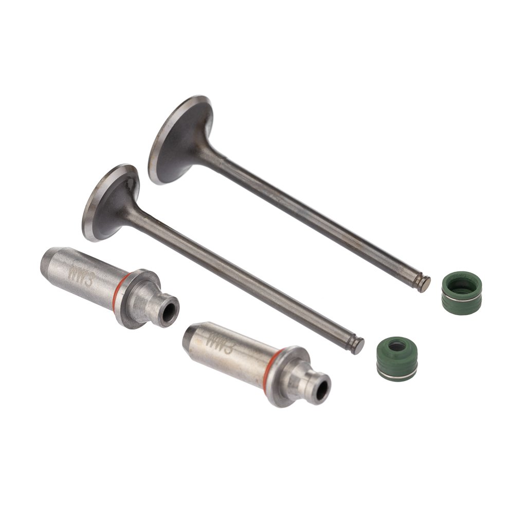 Kit de válvulas com guias e retentores verdes 6 peças para CG Titan 125, CG Fan 125 e Bros 125 com sobremedida de 0,10 mm
