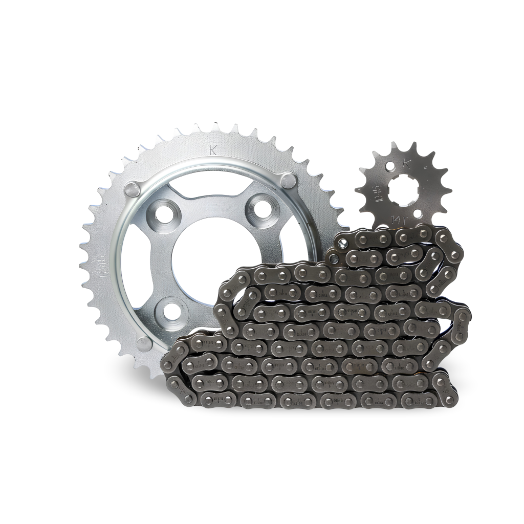Kit transmissão relação para CG 160 de 2015 a 2025, contendo 1 corrente reforçada 428H com 118 elos, 1 coroa com 44 dentes e 1 pinhão de 15 dentes – 428Hx118Lx44Tx15T.