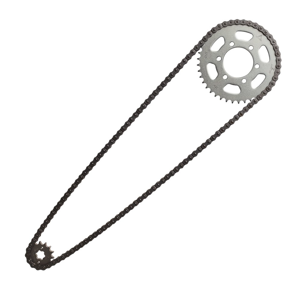 Kit transmissão relação para XTZ Crosser 150 de 2014 a 2025, contendo 1 corrente reforçada 428H com 122 elos, 1 coroa com 41 dentes e 1 pinhão de 14 dentes – 428Hx122Lx41Tx14T.